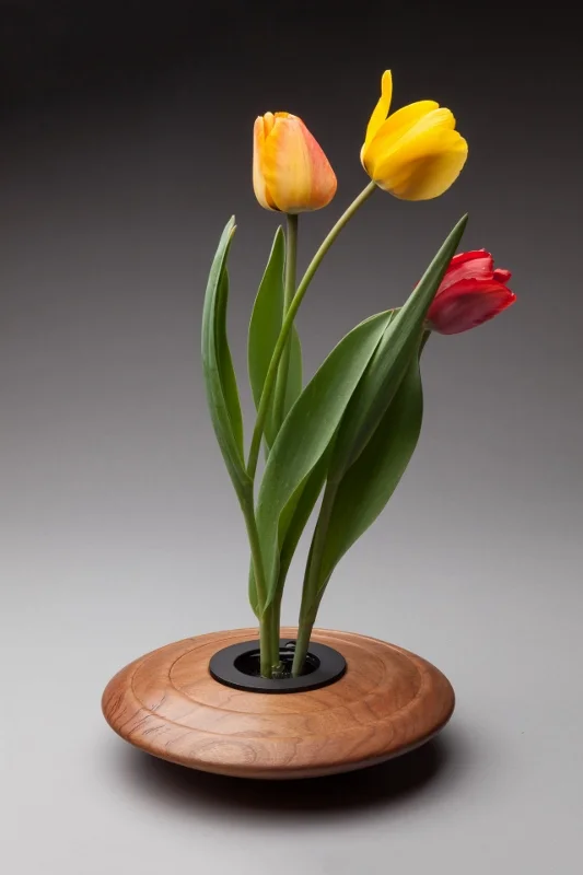 Ikebana Vase with Tulips - 8" Round - Cherry