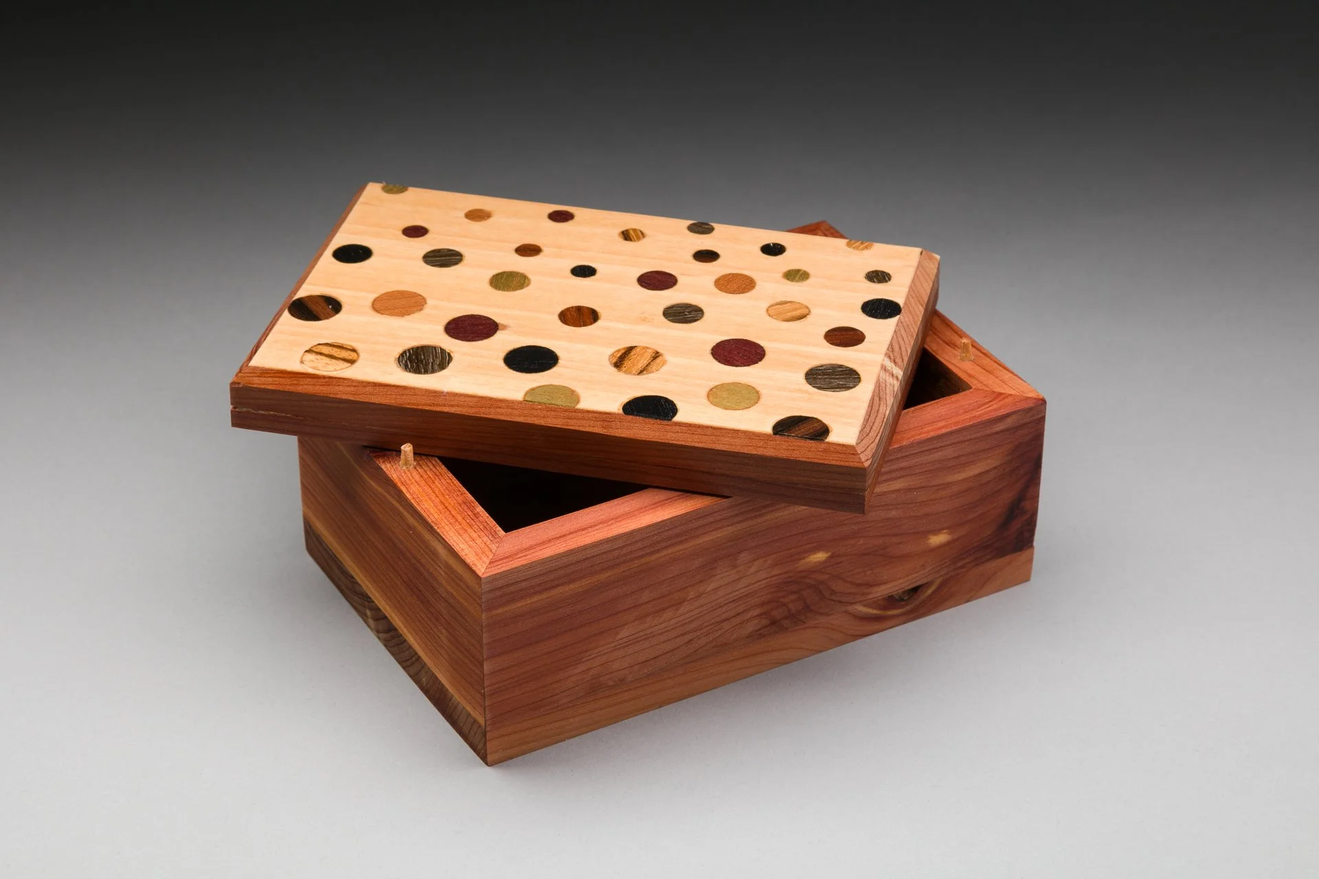 Falling Dots 5”x4”x2.5” - Cherry and Mixed Wood - Marquetry